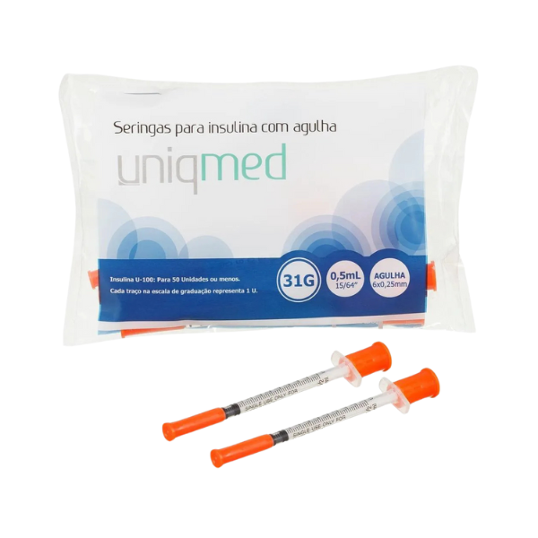 Seringa Insulina Uniqmed 31g 0,5ml c/Agulha 6,0×0,25mm Pct 10